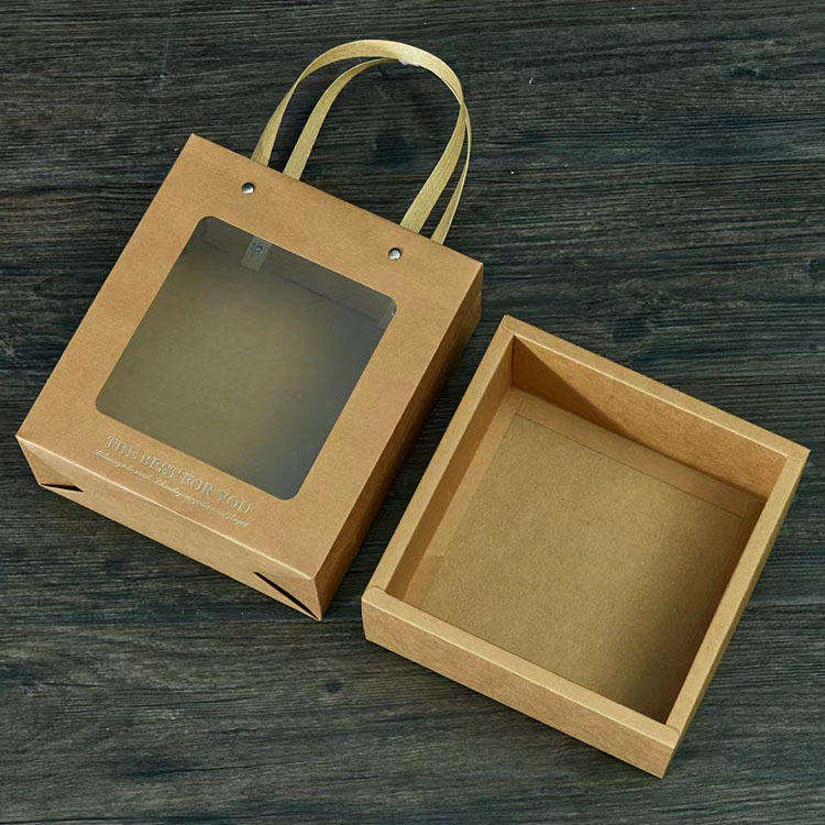 Caja de Papel Kraft Vintage Creativa con Ventana Transparente y Asa, Caja Vacía Tipo Cajón para Toallas de Té, Tazas, Regalos, con Opción de Estampado