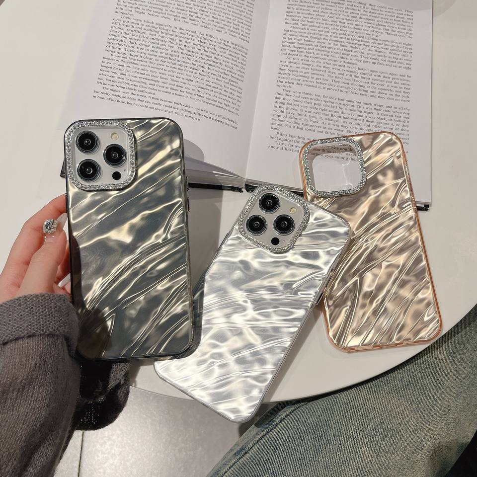 Funda de teléfono con láser de halo de ondulación de agua creativa para iPhone 16 15 Pro Max 14 13 12 11 Pro Max cubierta protectora de diamante galvanoplastia