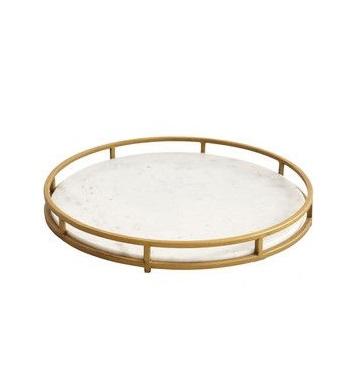 Bandeja creativa con diseño de mármol blanco para decoración de bodas, suministros de hotel, vajilla, bandeja de servicio de aluminio con asas doradas