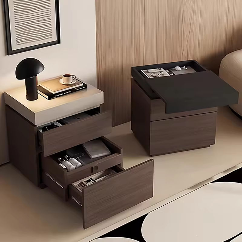 Mesita de Noche Creativa de Madera con Almacenamiento Oculto, Moderna Mesita de Noche de 4 Cajones para el Hogar, Diseño Simple, Gabinete Lateral