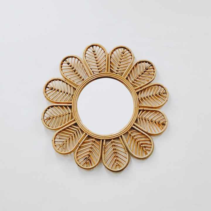 Espejos de pared con marco de mimbre tejido creativo, diseño bohemio redondo para sala de estar, dormitorio, baño o entrada