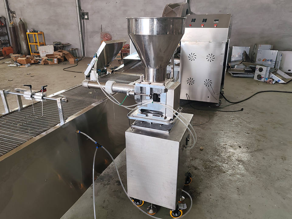 Toda la línea incluye principalmente:hornear, transportador de enfriamiento, relleno, pieza plegable y pieza rodante.