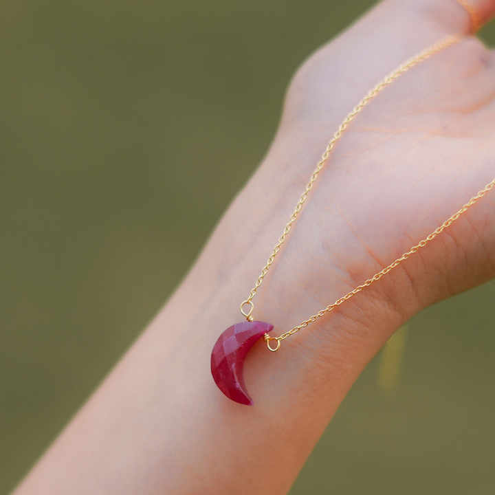 Crescent Moon Natural Ruby Gemstone Wire Wrap Charm Double Bail Colgante Collar 925 Collar de plata