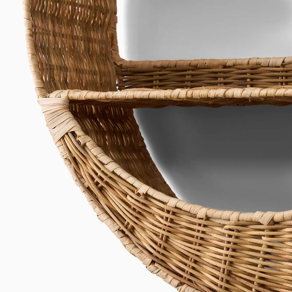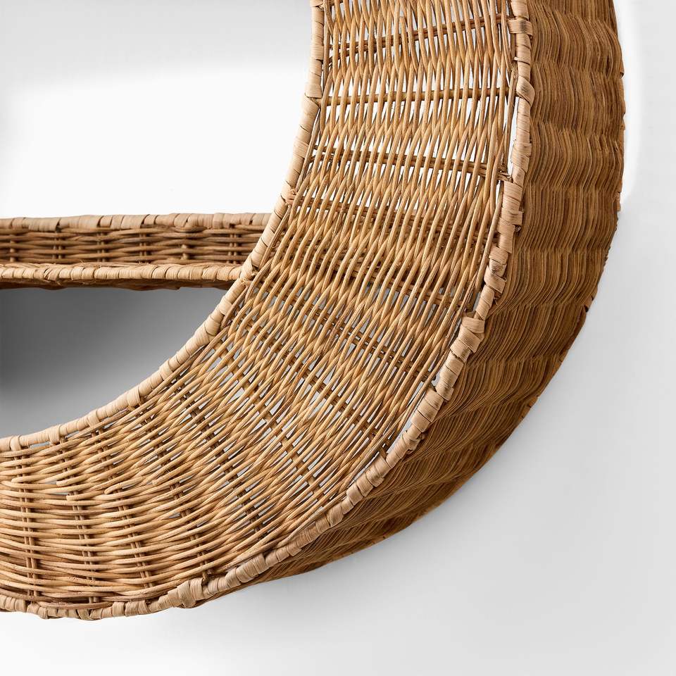 Estante de Pared de Ratán con Forma de Luna Creciente - Estante Flotante Tejido de Estilo Encantador para Decoración de Cuarto de Niños