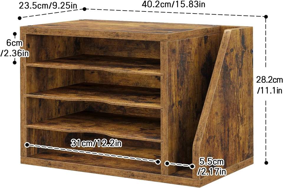 Organizador de Archivos Rectangular de Madera de Ingeniería Creso Hom, Escritorio con 3 Estantes Ajustables, Clasificador de Correo, Papel, Revistas, Color Marrón Rústico