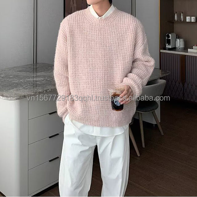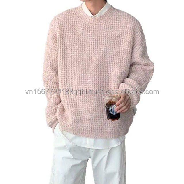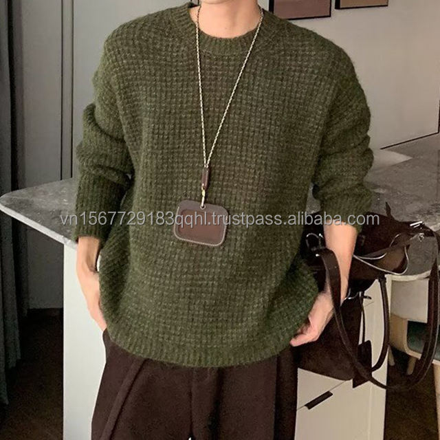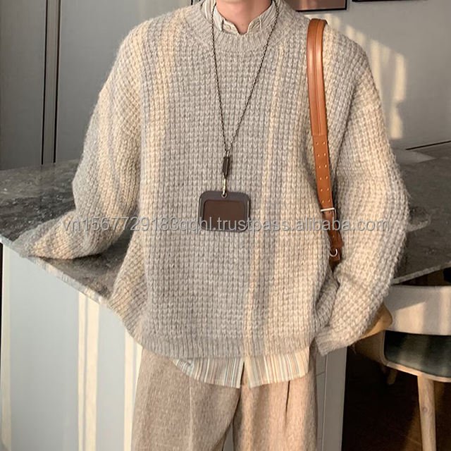Suéter de punto con cuello redondo para hombre, logotipo personalizable, textura relajada, estilo a cuadros, tacto avanzado, ropa interior, top cálido para otoño e invierno