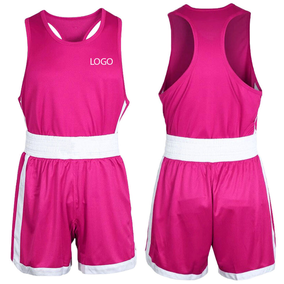 Conjuntos de Uniformes de Boxeo y MMA de Moda, Cuello Redondo, Unisex, Hechos de Poliéster, Color Rosa, Secado Rápido, Duraderos, Ligeros