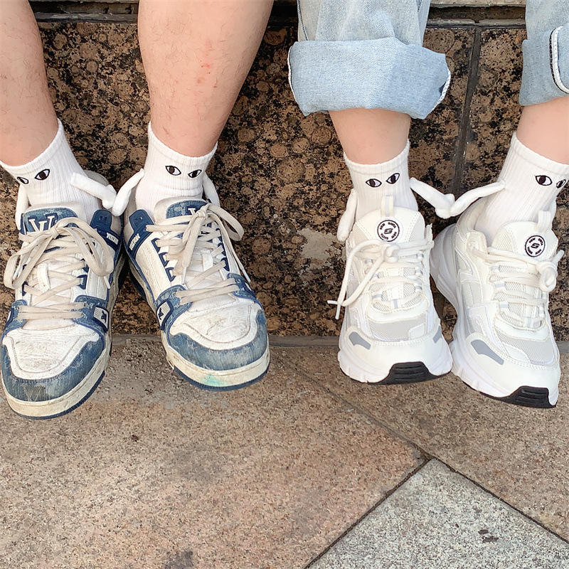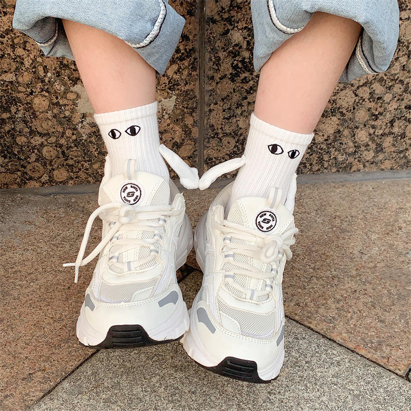 ElegirColor: Calcetines blancos bordados con forma de ojo.
