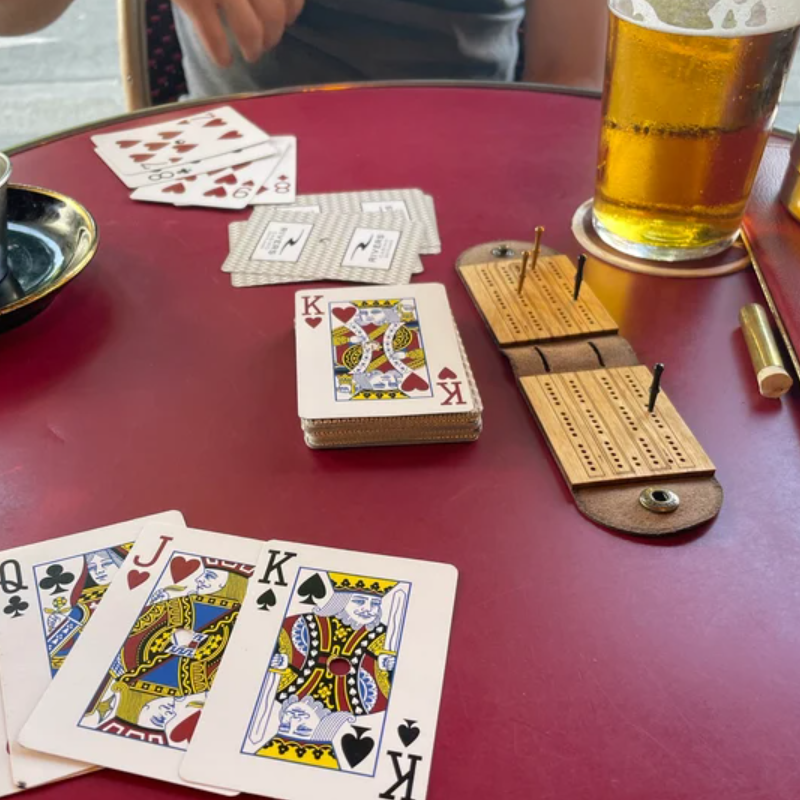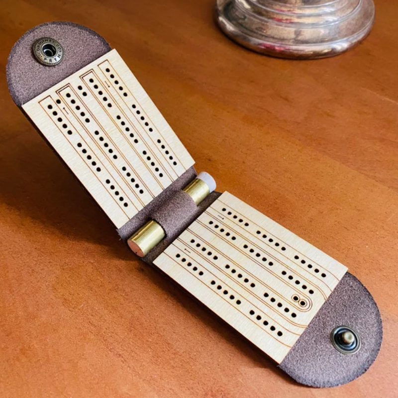Cribbage Board Leather Plegable Cribbage Set Card Game Board con clavijas