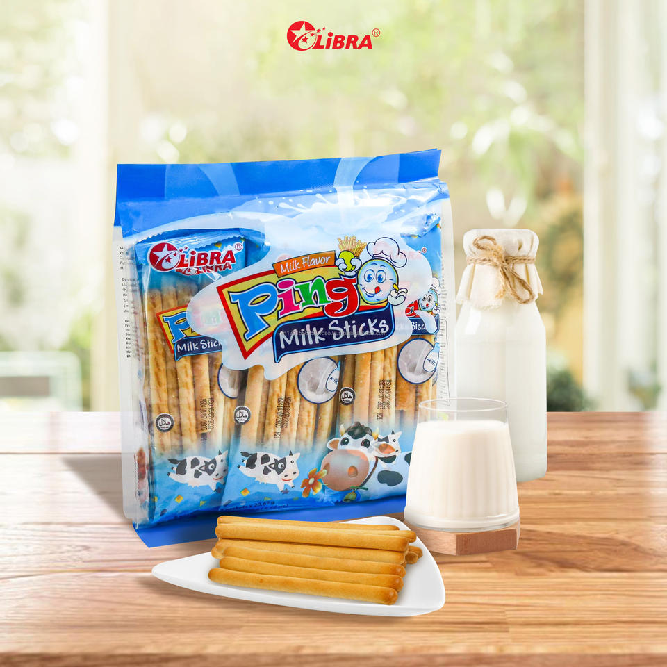 Crujiente Halal dulce Pingo 186G palitos de leche galletas con sabor a vainilla galletas empaquetadas caja bolsa de cartón bolsita azul