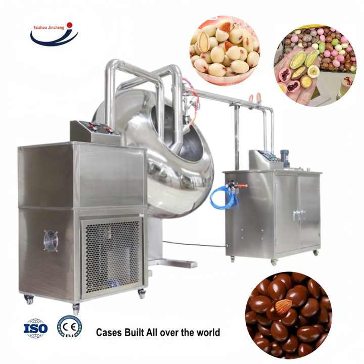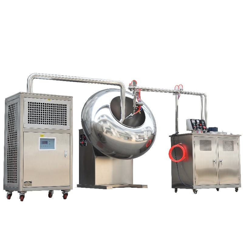 Crispy Pistacho Granos de café Avellanas Encapsulado Jarabe de fruta seca Máquina de recubrimiento de chocolate
