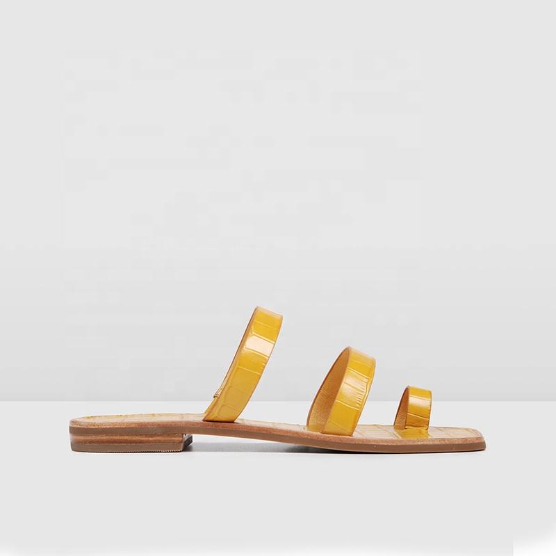 Sandalias Planas de Mujer con Punta Cuadrada y Cuero con Estampado de Cocodrilo, Sandalias Modernas de Verano