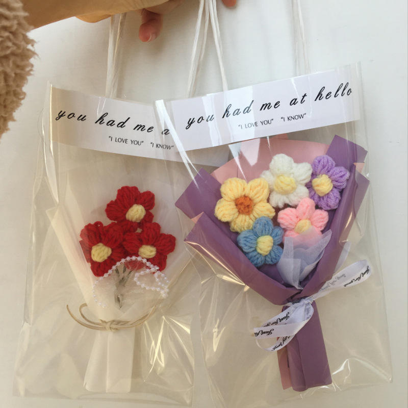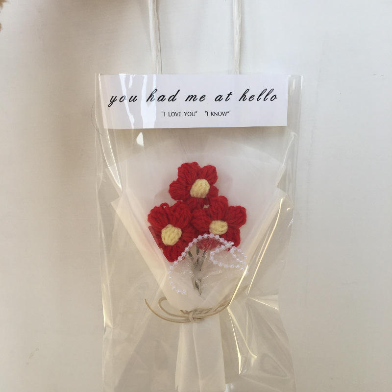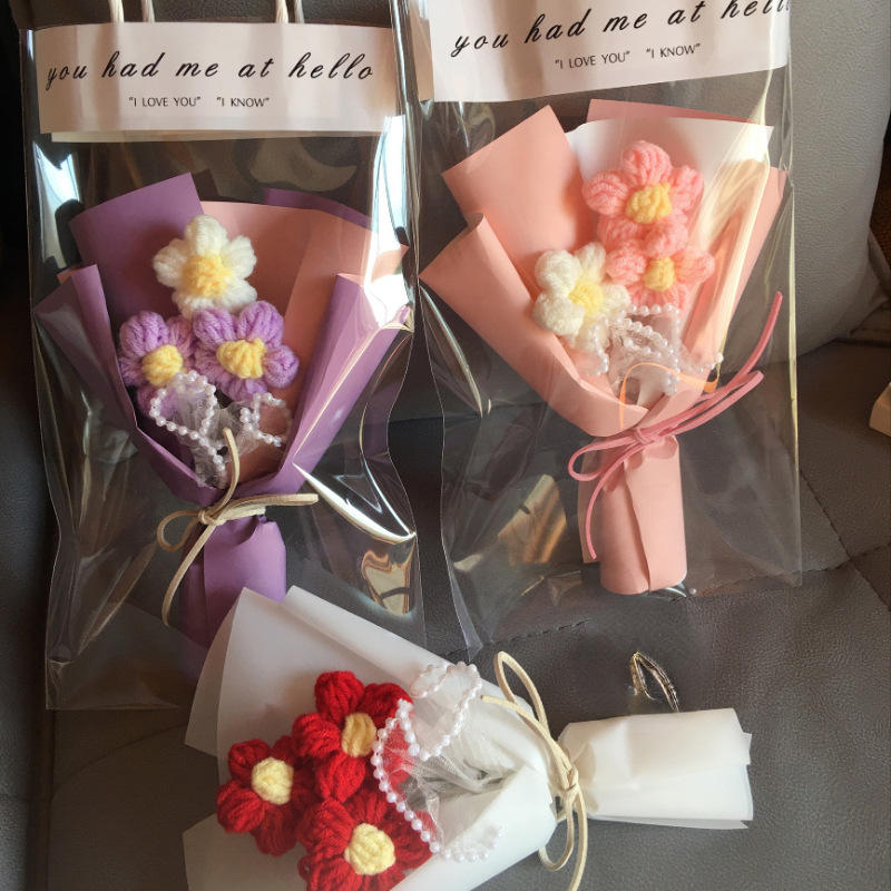 Nombre del producto:Flores de lana hechas a mano Flor de punto rosa