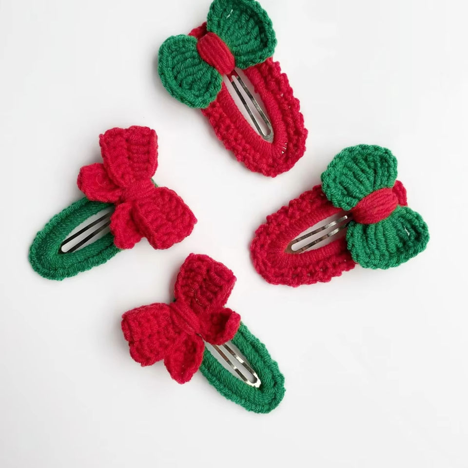 Accesorios para el cabello de ganchillo Horquilla hecha a mano de lana Regalo para niñas Adorno de temporada de vacaciones de Vietnam