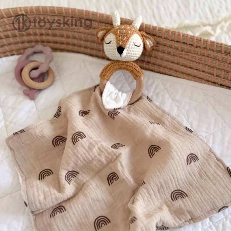 Juego de Sonajero de Renos de Ganchillo y Manta de Seguridad - Juguete Sensorial para Bebés, Regalo de Navidad Hecho a Mano para Recién Nacidos de 0 a 12 Meses