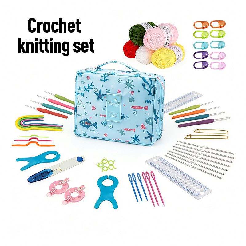 Kit de Herramientas de Crochet, Accesorios de Tejido con Hilo Cuadrado, Juego de Aprendizaje para Principiantes, Simple, Ecológico, Portátil y Ergonómico