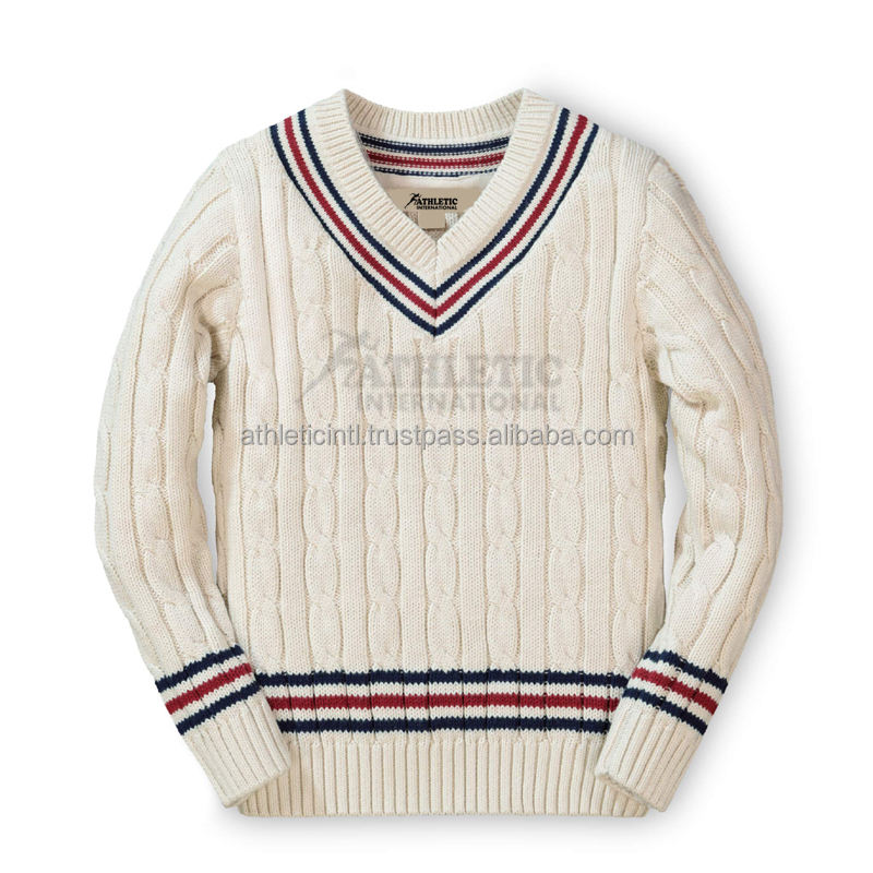 Cárdigan de rayas de ganchillo Jersey personalizado Suéteres de cricket con cuello en V ODM Invierno para hombres