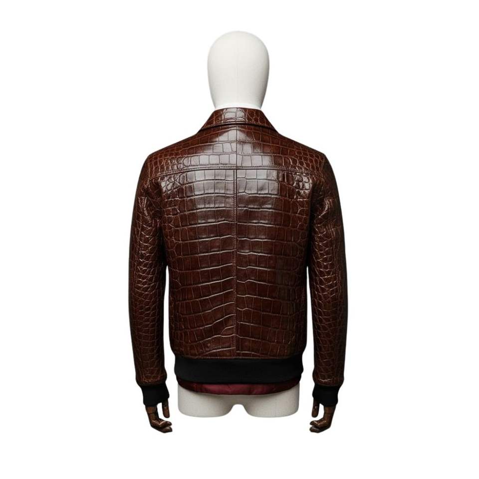 Chaqueta de Cuero con Estampado de Cocodrilo, Estilo Vintage, Chaqueta de Motociclista Hecha a Mano con Cuero Auténtico, Elegante Chaqueta de Cocodrilo