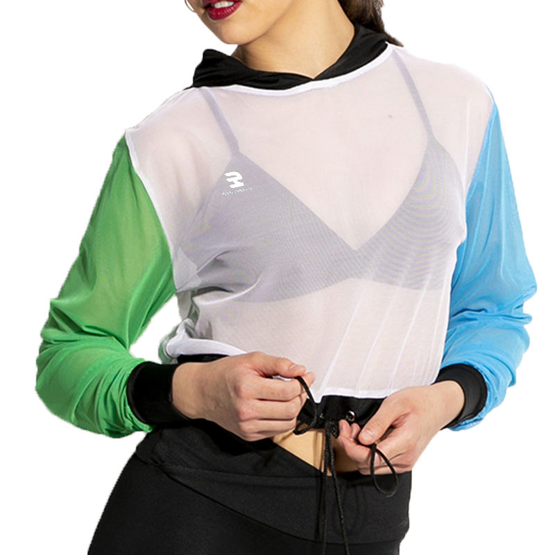 Nombre del producto:Mujeres Crop Sheer Mesh Hoodie