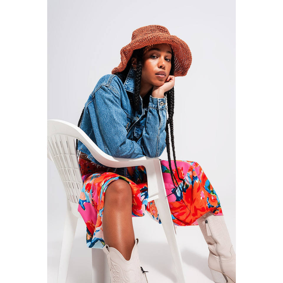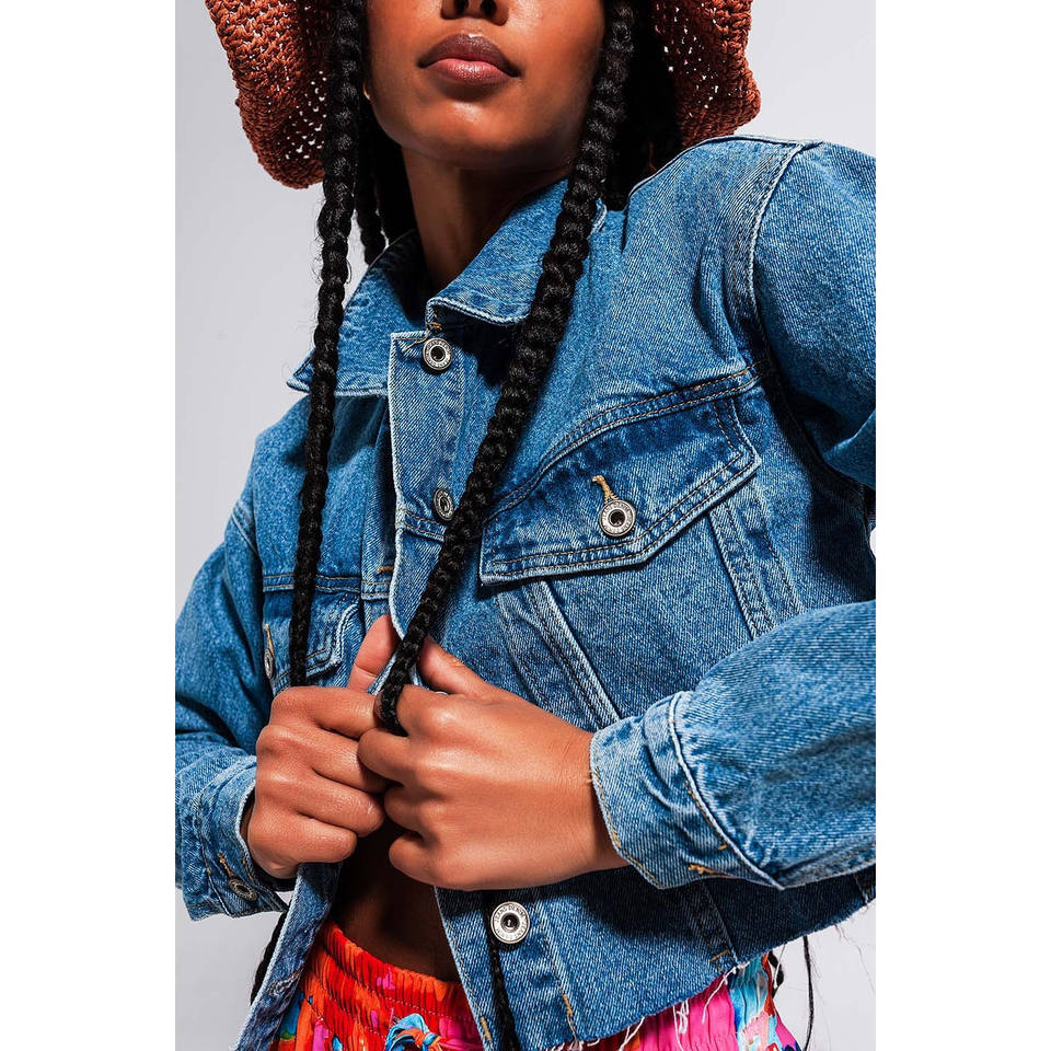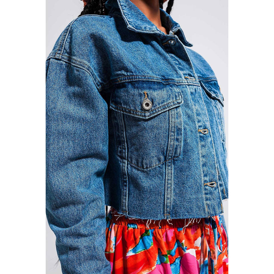 Chaqueta vaquera corta con dobladillo sin rematar en lavado medio