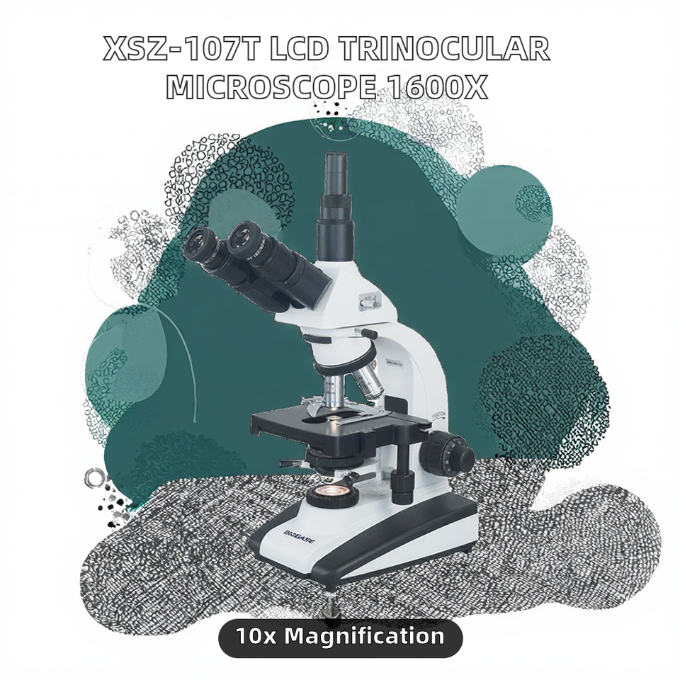 Microscopio Trinocular Biológico LCD con Cámara, 40-1600 Aumentos, Plataforma Móvil de Doble Capa, Enfoque Manual, Iluminación LED, 1920x1080