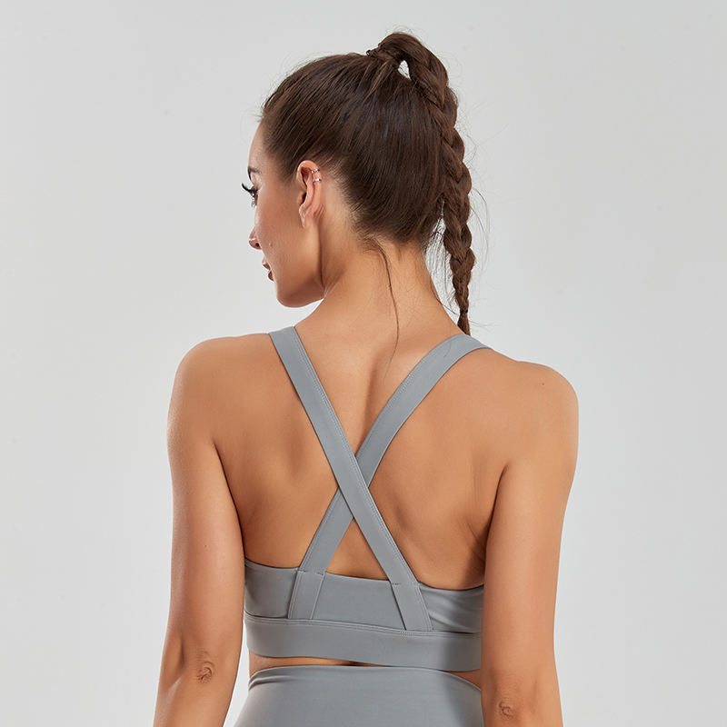 Sujetador deportivo de palangre de entrenamiento de yoga inalámbrico con soporte medio acolchado con espalda cruzada con copas extraíbles