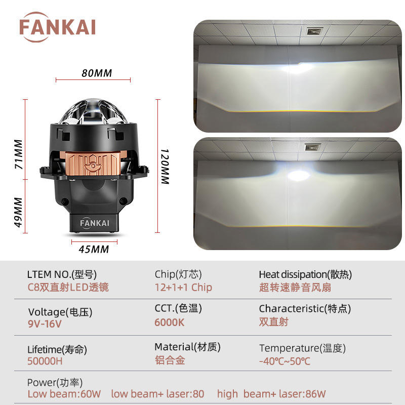 Faros Delanteros para Automóvil Fankai Cross-Border de 3 Pulgadas C8, Láser LED de Doble Luz Directa, Bi-Xenón, Lente de Aleación de Aluminio, 86W de Alta Potencia, Retrofit
