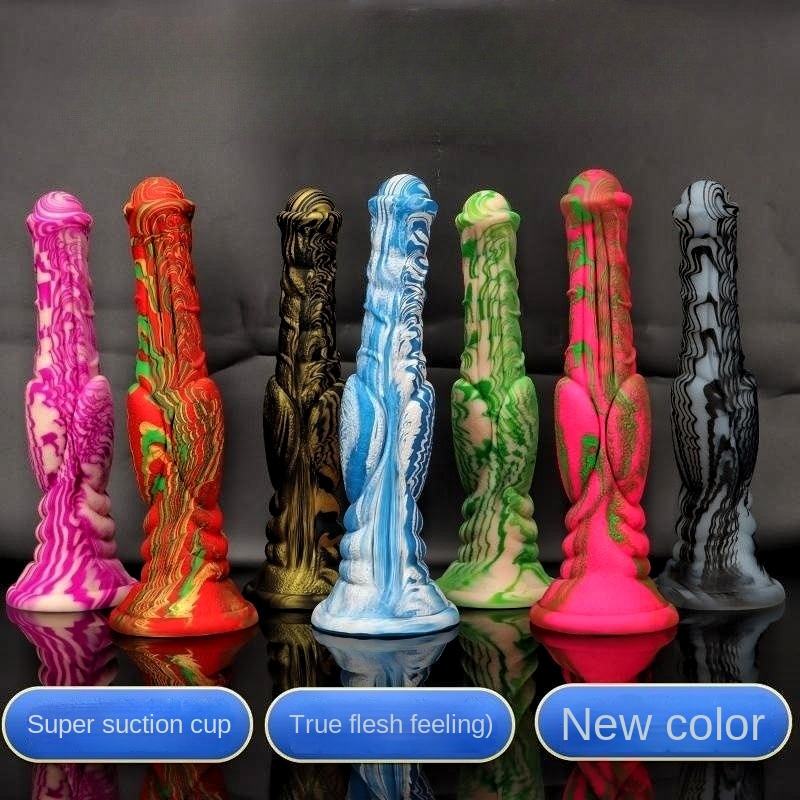 Pene de silicona de Color mezclado Animal transfronterizo, consolador femenino sexual para adultos, boxeo, tapón Anal de caballo Extra grande y largo