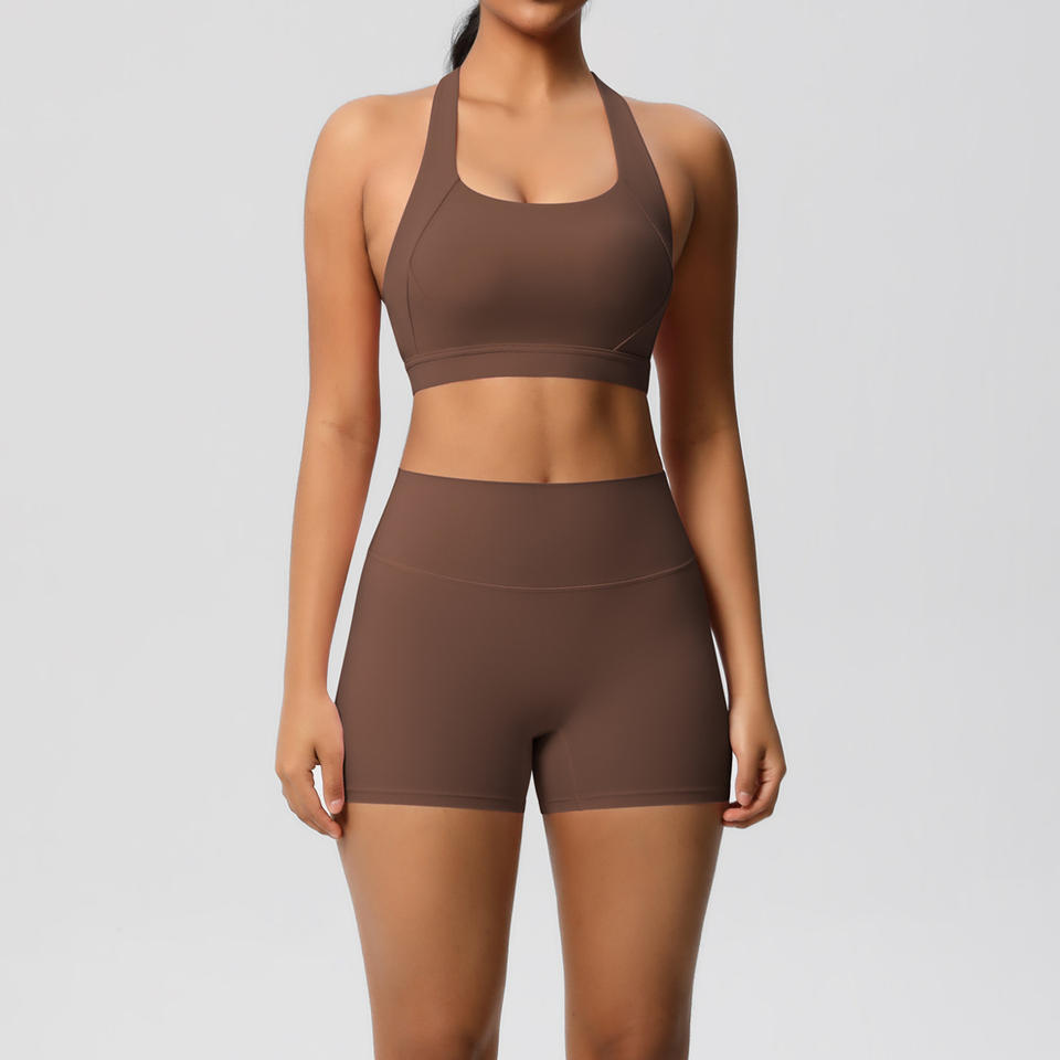 Cross-Border Cloud-Feel Tight Yoga Sujetador deportivo y pantalones cortos de levantamiento de cadera Set Equipo de correr de fitness a prueba de golpes