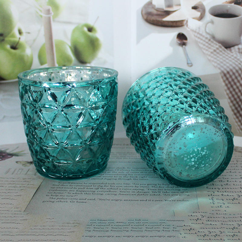 Soporte votivo de vidrio de colores en relieve con borde cruzado, vela de aromaterapia, sombra de luz para ambiente navideño, soporte para velas de té
