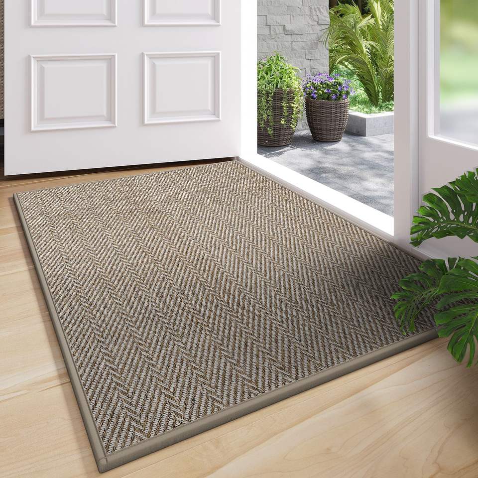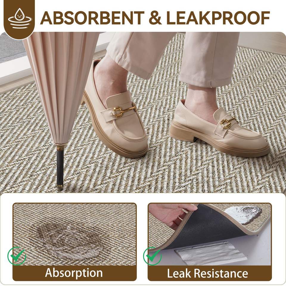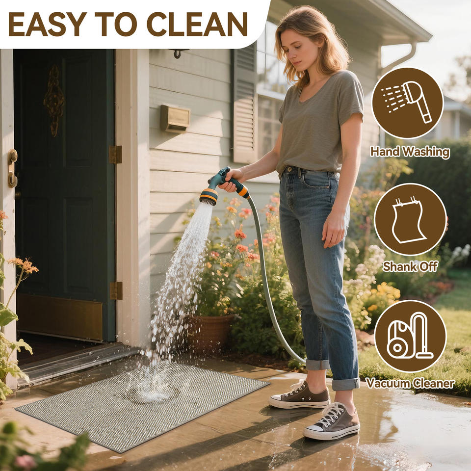 Tapete de Entrada Rectangular Antideslizante y Resistente a las Manchas, de Fibra de Poliéster con Patrón Geométrico para Uso Doméstico