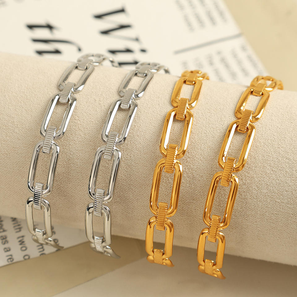 Pulsera de Cadena Estilo Europeo Americano, de Acero de Titanio con Baño de Oro de 18K, Ajustable, Unisex