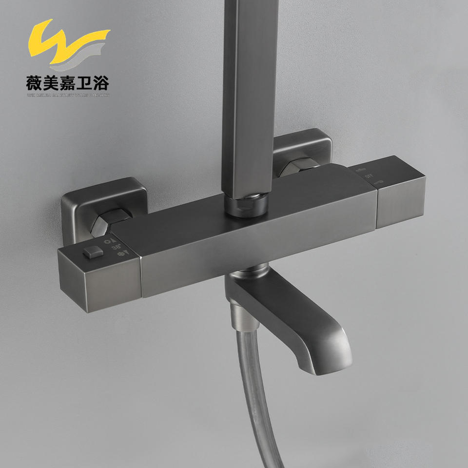 Juego de Ducha Termostática Cuadrada de Cobre, Exclusivo para Comercio Transfronterizo Vimijia, con Rociador Superior y Grifo Negro
