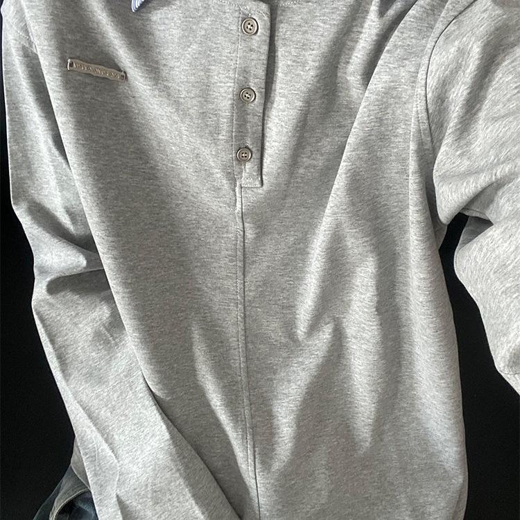 Sudadera Holgada con Cuello Camisero Pintado a Mano de Dos Piezas Falsas, con Costuras Decorativas, para Hombre, Primavera-Otoño, Estilo Moderno