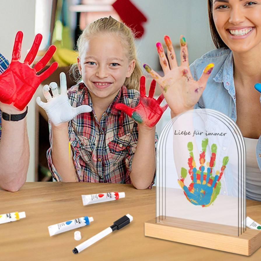Marco de Fotos Familiar Transfronterizo con Huellas de Manos, Impresión Digital Transparente de 5 Capas, Decoración del Hogar, Forma Rectangular