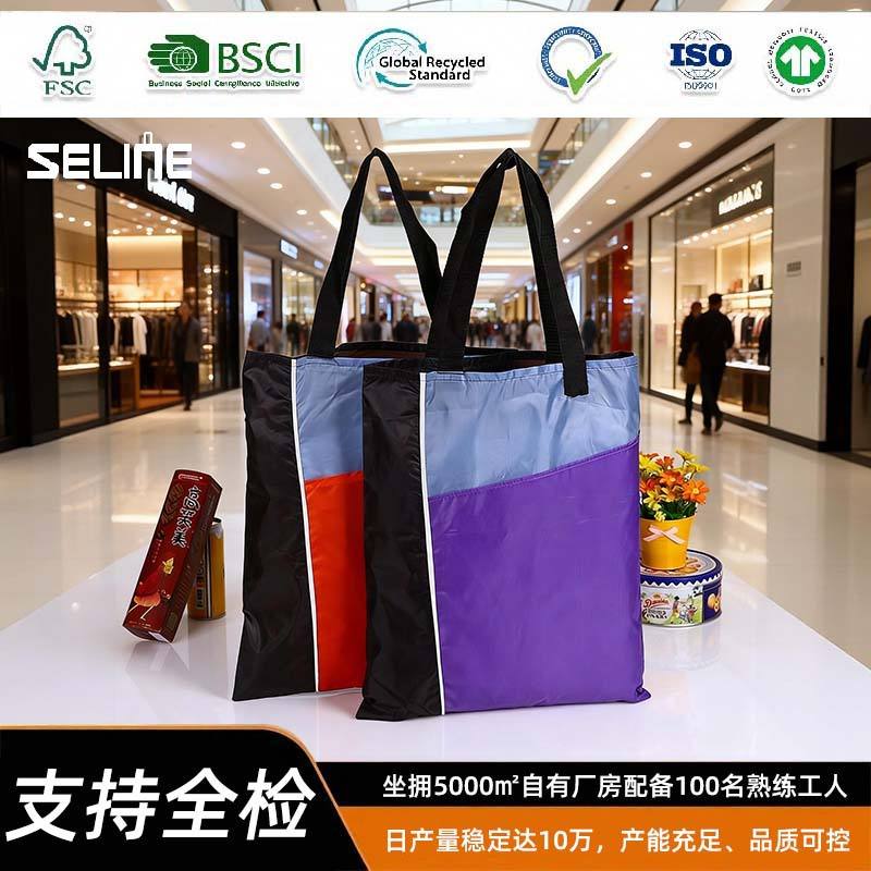 Cross Border Foldable Spliced Multi Color Polyester Tote Bag Large Capacity Portable Shopping Bag Storage Bag Wholesale
