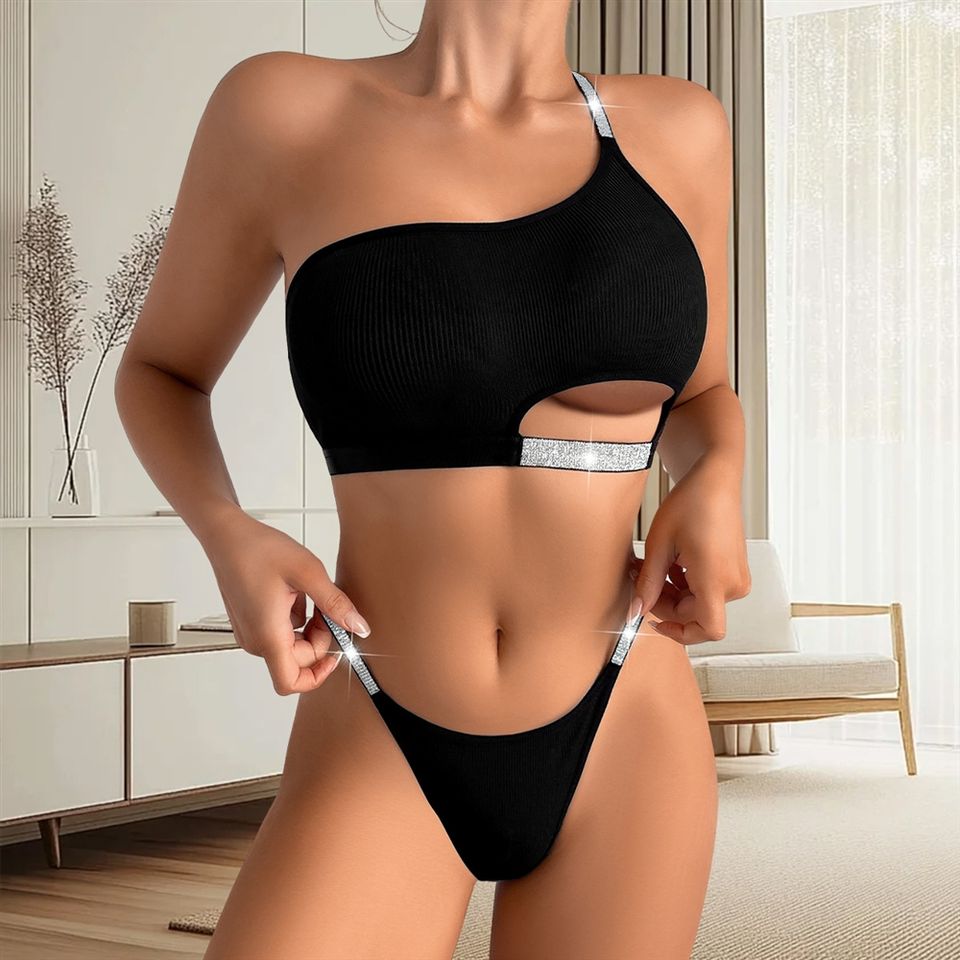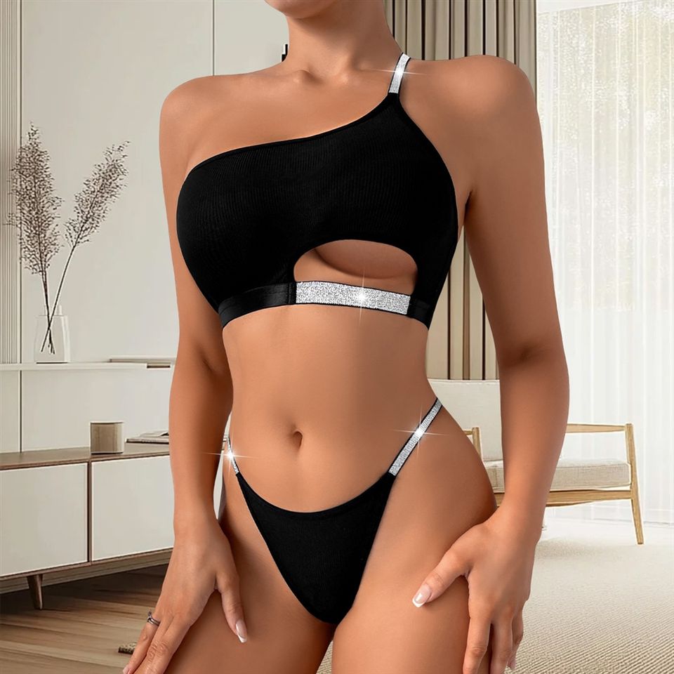 Comercio Exterior Transfronterizo para AliExpress, Conjunto de Lencería Femenina con Camisola Plateada Hueca, Sexy y con Espalda Descubierta