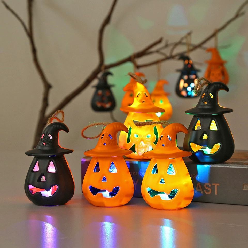 Linterna de calavera de mano de Halloween transfronteriza, molino de viento de calabaza LED, accesorios colgantes, decoración de Ambiente de fiesta, Mate de plástico