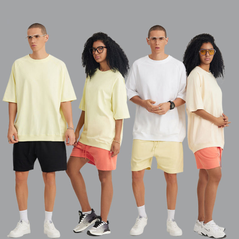Cross Border Heavyweight Pure Cotton Raglan Camiseta Tejido de manga corta de punto Mangas de 5 puntos High Street Wide Version