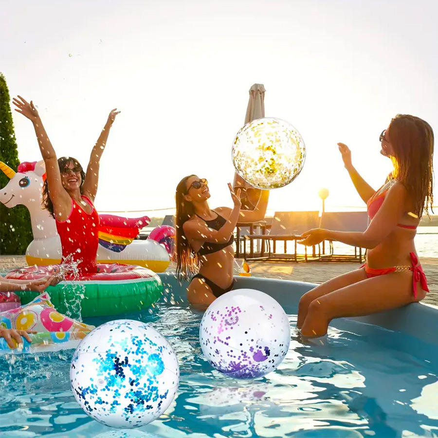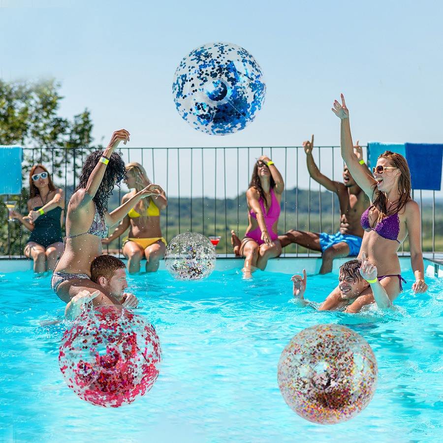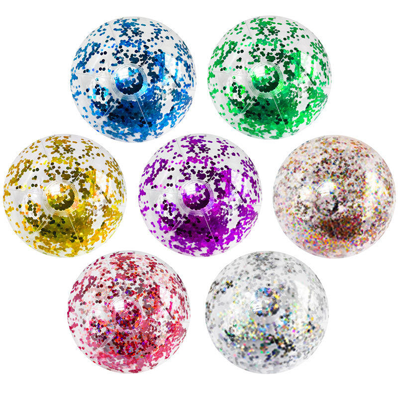 Pelota de Playa Inflable de Plástico con Brillantina, Diseño Transparente y Colorido para Deportes Acuáticos, Unisex, Éxito de Ventas Transfronterizo