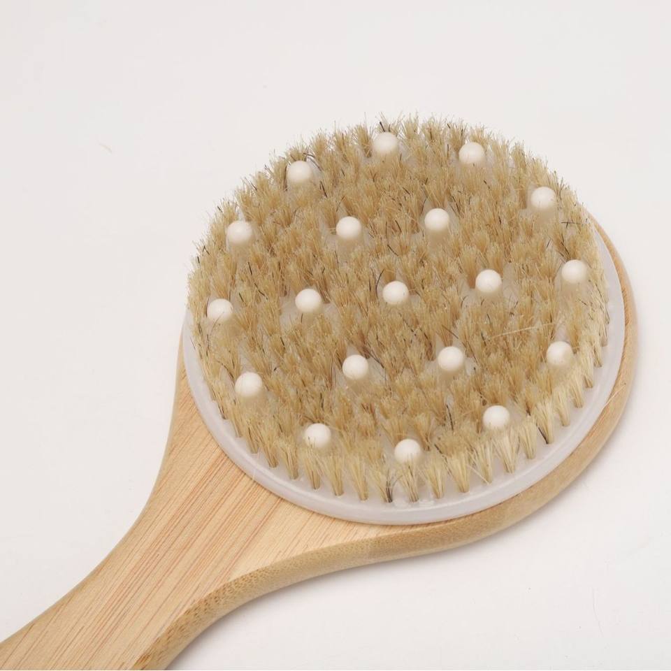 Venta caliente transfronteriza para Amazon cepillo de baño de cerdas de jabalí cepillo de masaje de madera de bambú de mano para el cuerpo