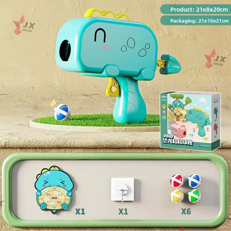 Juguete educativo de interior transfronterizo para niños, pistola de bolas de dinosaurio con bolas pegajosas de eyección de objetivo, juguete de lanzamiento de dardos de bebé de plástico