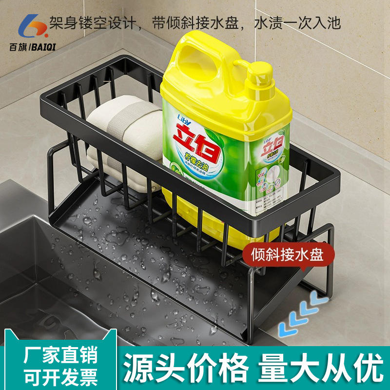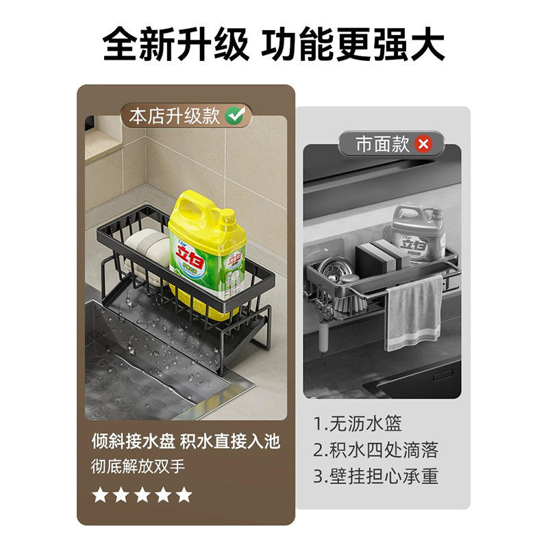 Estante de almacenamiento para esponjas de cocina transfronterizo con bandeja, sin necesidad de instalación, colgante para encimera, escurridor de fregadero, tamaño L