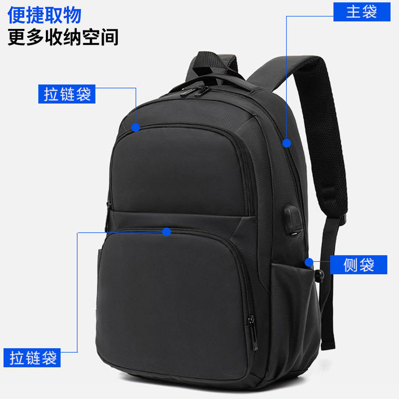 Cross Border Men's Large Capacity Backpack Waterproof Laptop Bag With Usb Business Travel Commuter Backpack Solid Color 20-35L