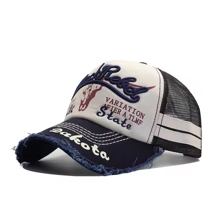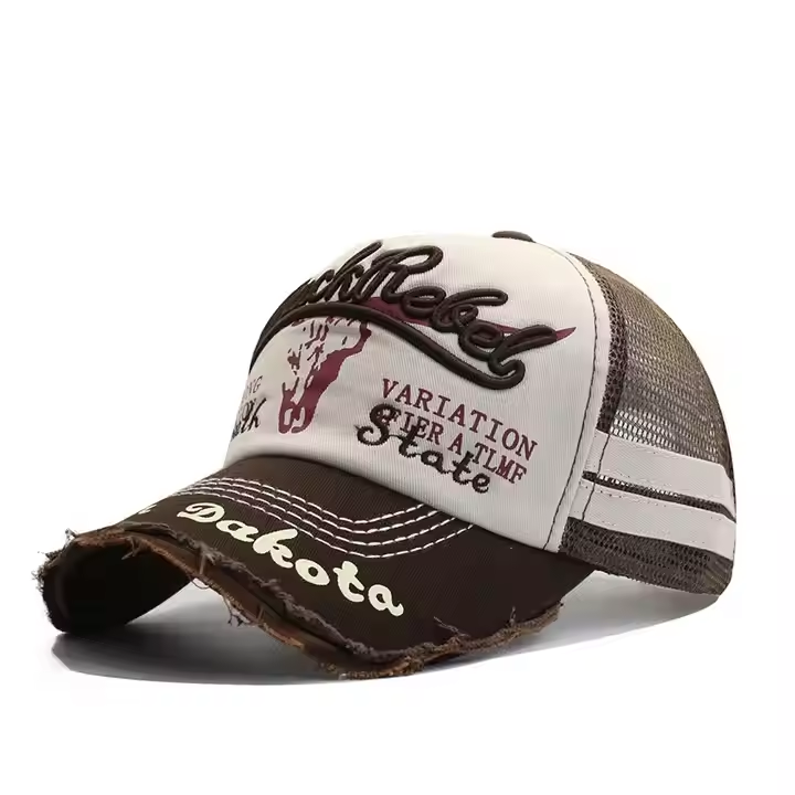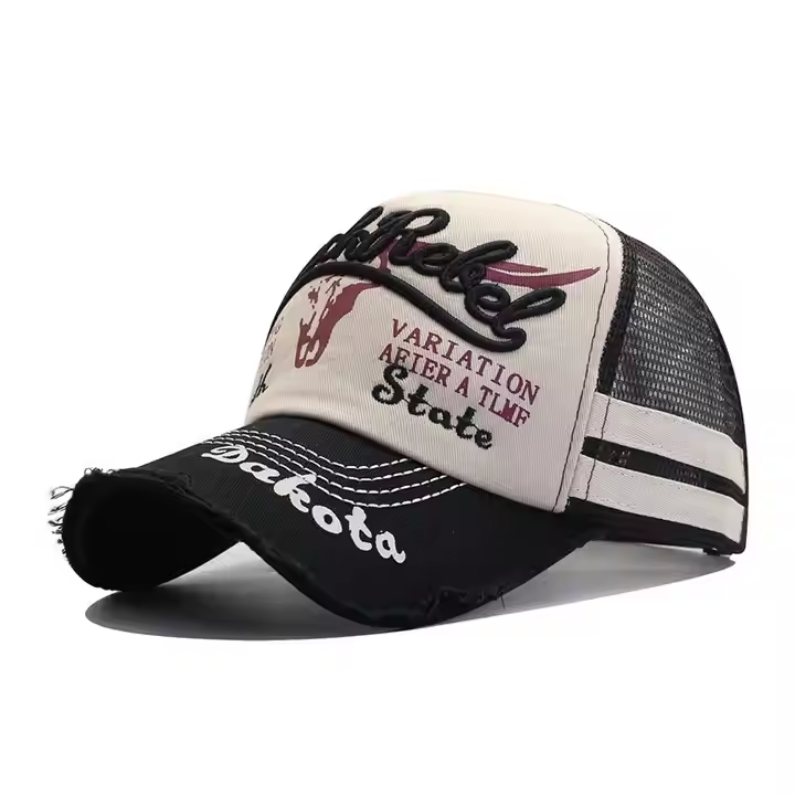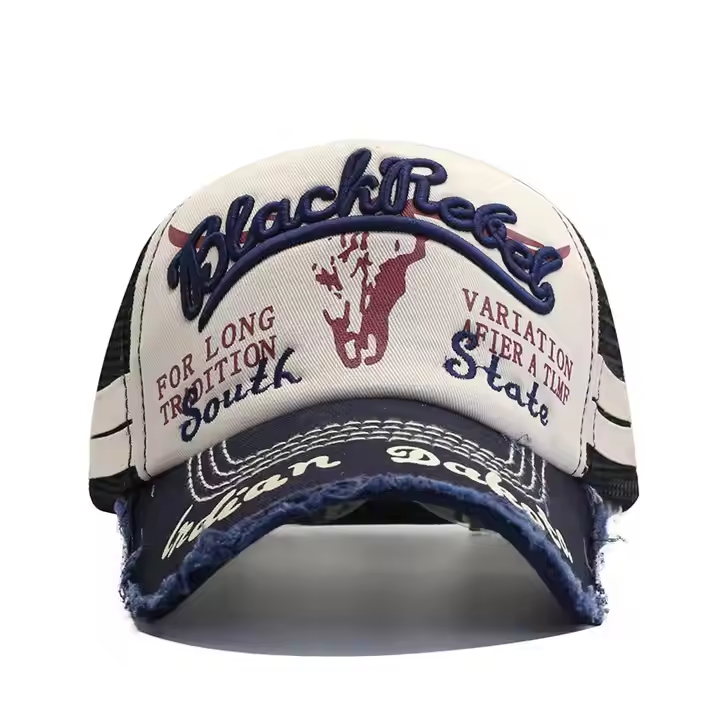 Gorra de béisbol de malla para hombre, estilo internacional nueva colección primavera-verano, efecto lavado, estampado de cabeza de toro y bordado de letras