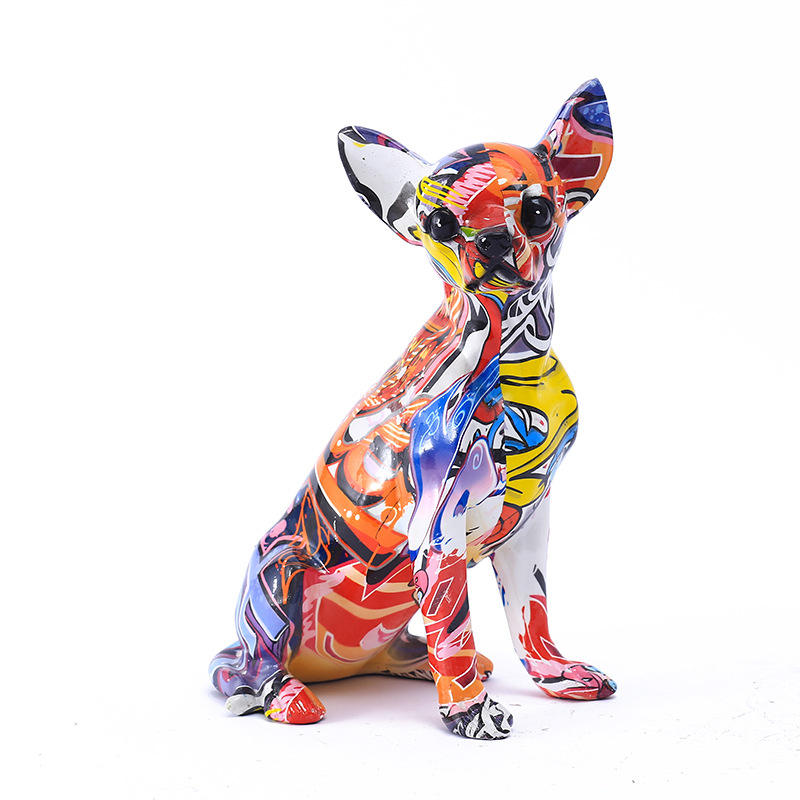 Nuevo Adorno de Chihuahua con Patrón Abstracto Multicolor, Tallado y Moldeado por Inyección, para Sala de Estar y TV