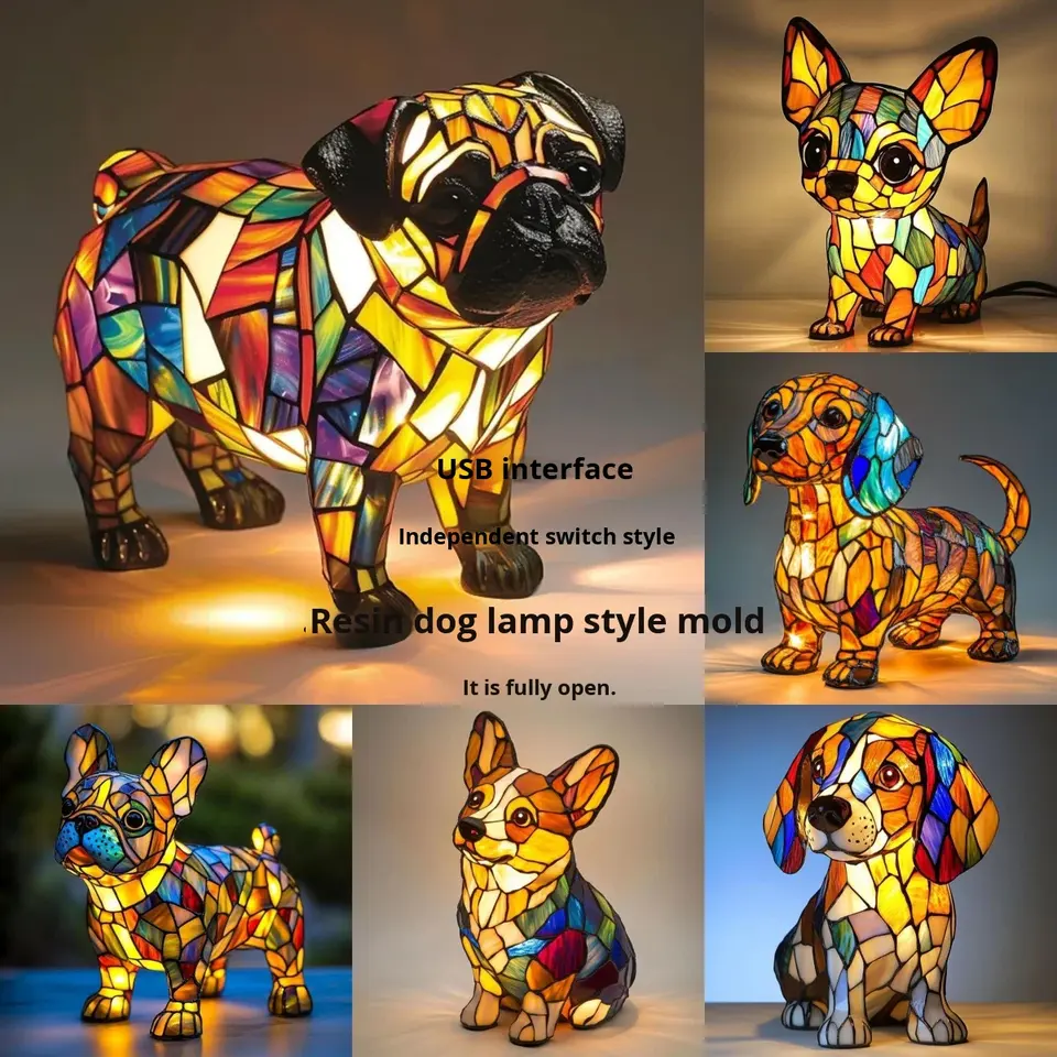 Nueva Serie de Adornos de Resina Ecológicos con Diseño de Perro, Luz Nocturna LED, Arte Glaseado, Decoración Creativa para el Hogar y Escritorio