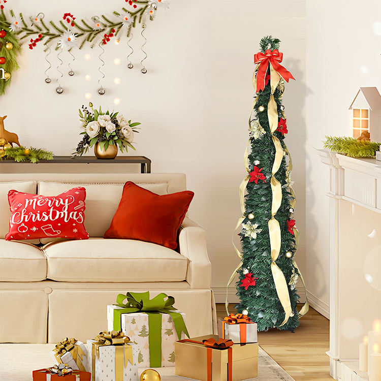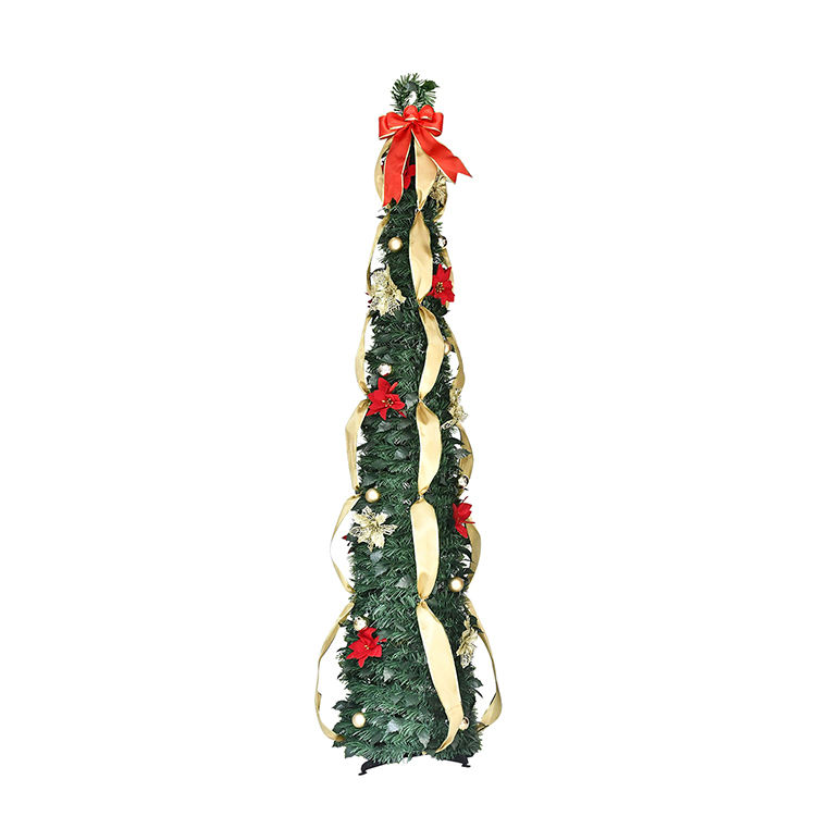 Nuevo Set de Árbol de Navidad Plegable con Lazos y Cintas Elásticas, Decoración Navideña para el Hogar