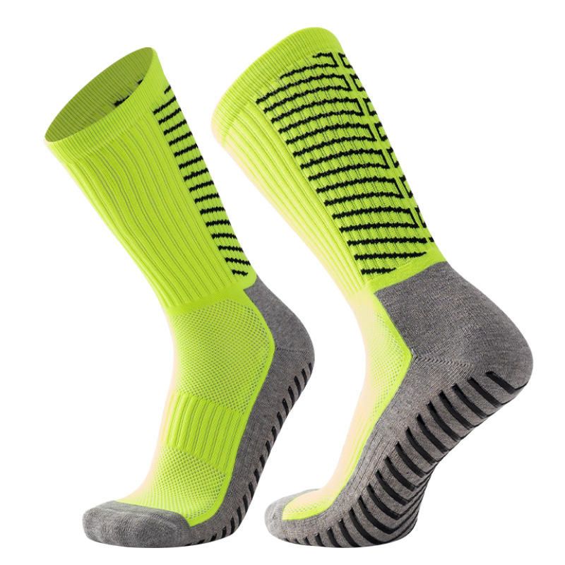 Calcetines de fútbol de corte medio/largo de compresión transfronteriza para jóvenes antideslizantes con cojín de rizo y diseño de rayas calcetines deportivos