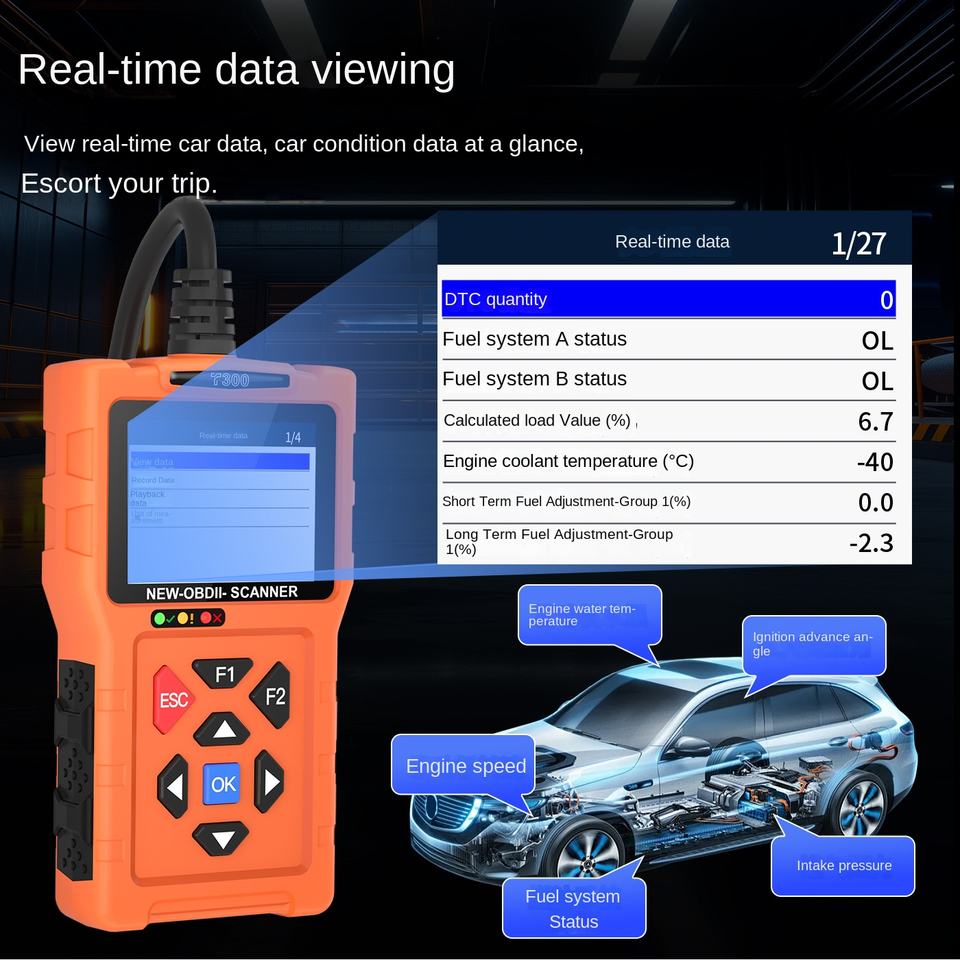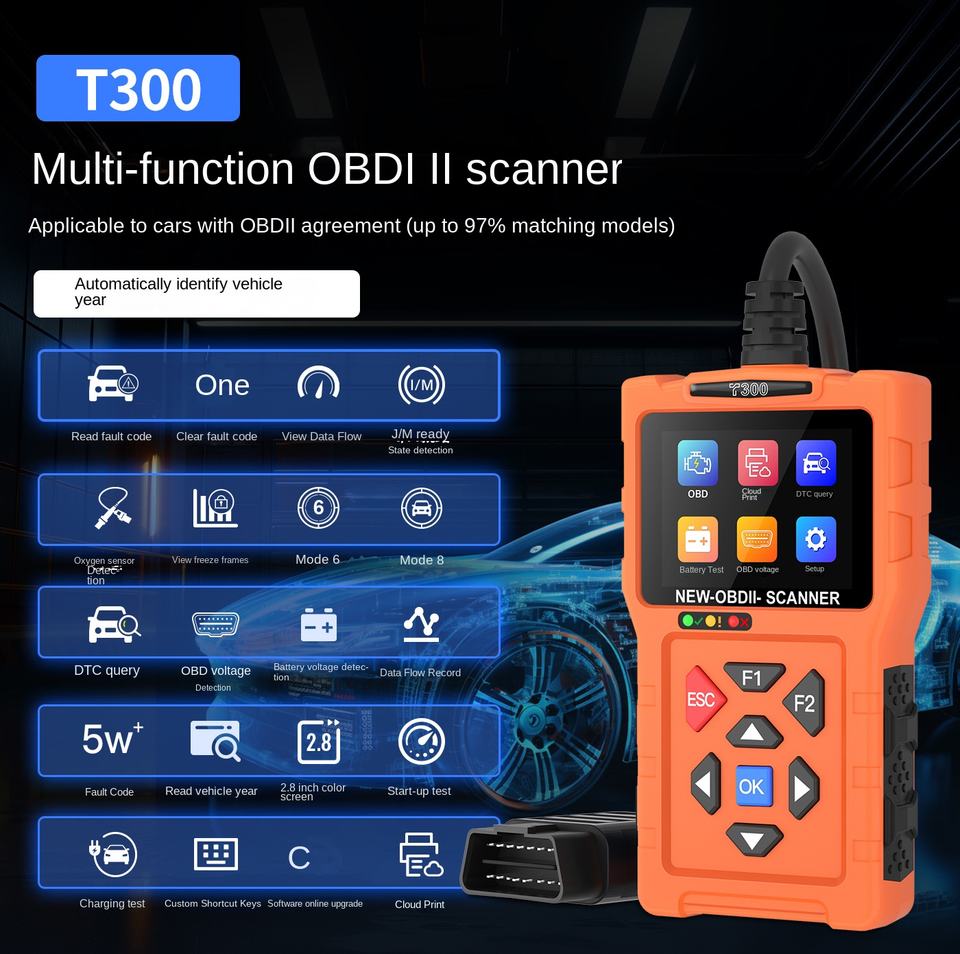 Lector de código OBD2 transfronterizo, instrumento de diagnóstico de fallas de coche, Analizador de motor, lectura de voltaje de batería Elm327 Ourense T300 12V